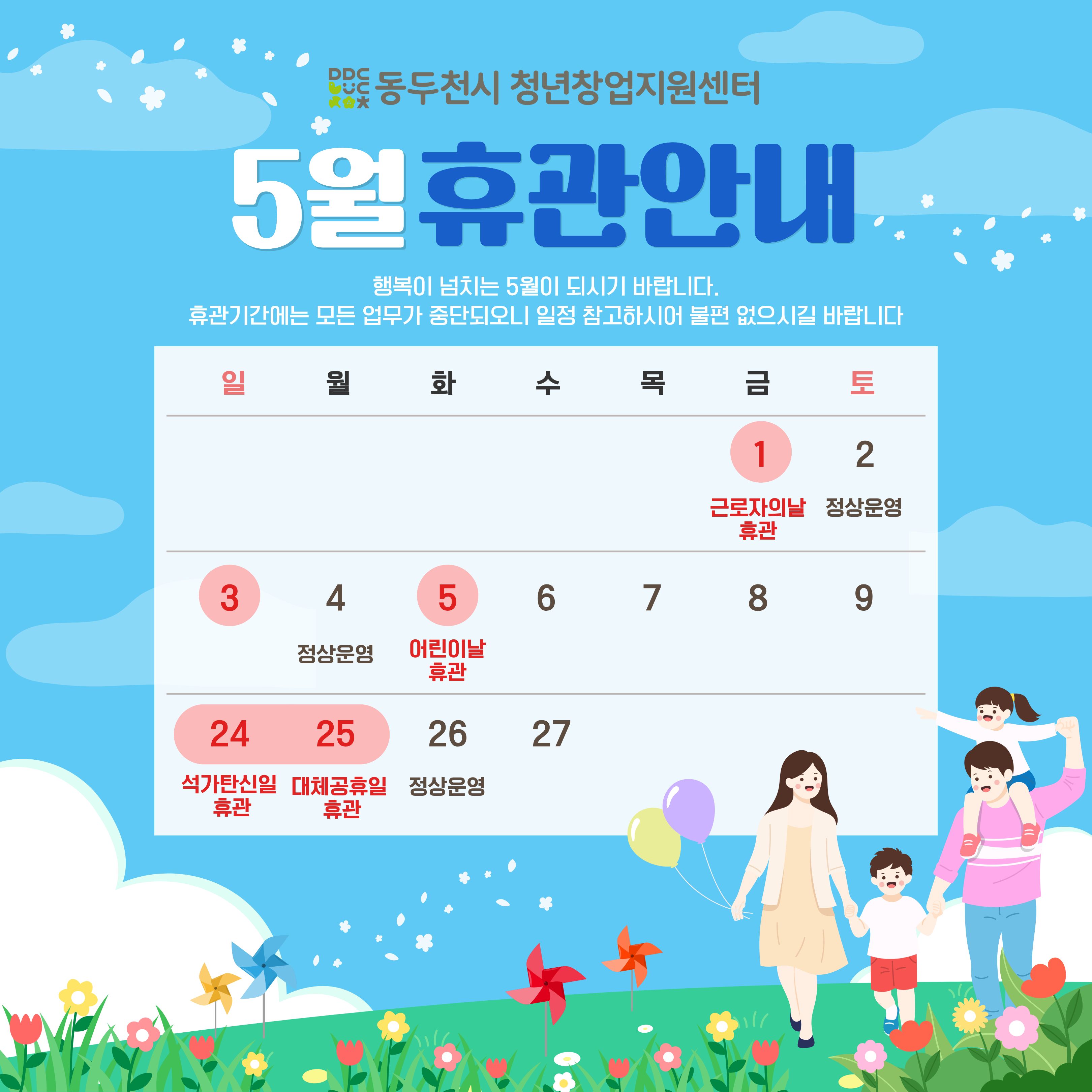 센터 운영 일정과 관련하여 아래와 같이 휴관일을 안내드립니다.