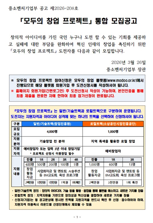 *자세한 내용은 모두의 창업 홈페이지(www.modoo.or.kr)에서 확인이 가능합니다.