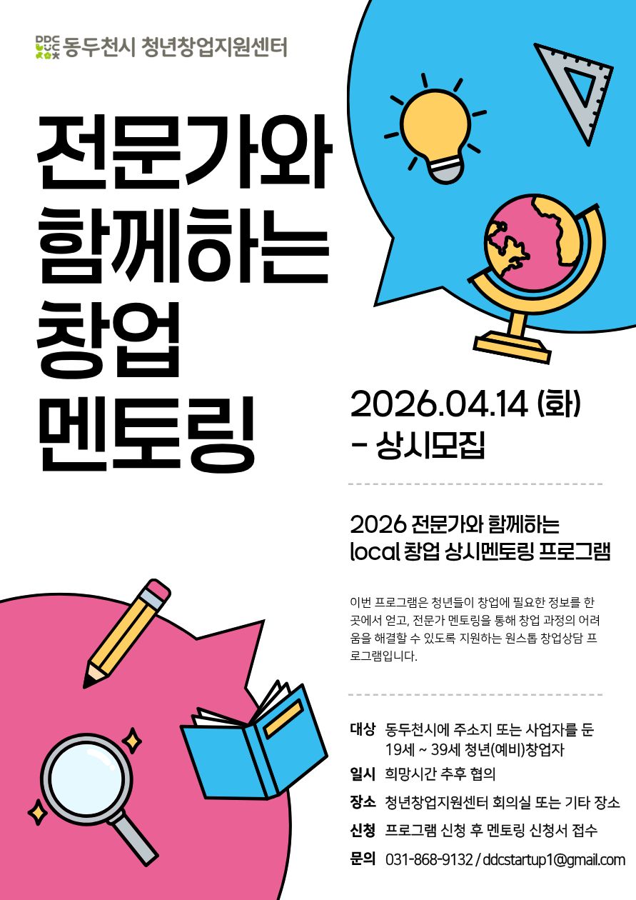 청년 창업가의 성장을 지원하기 위한 Local 창업 상시 멘토링 프로그램 참여자를 모집합니다.